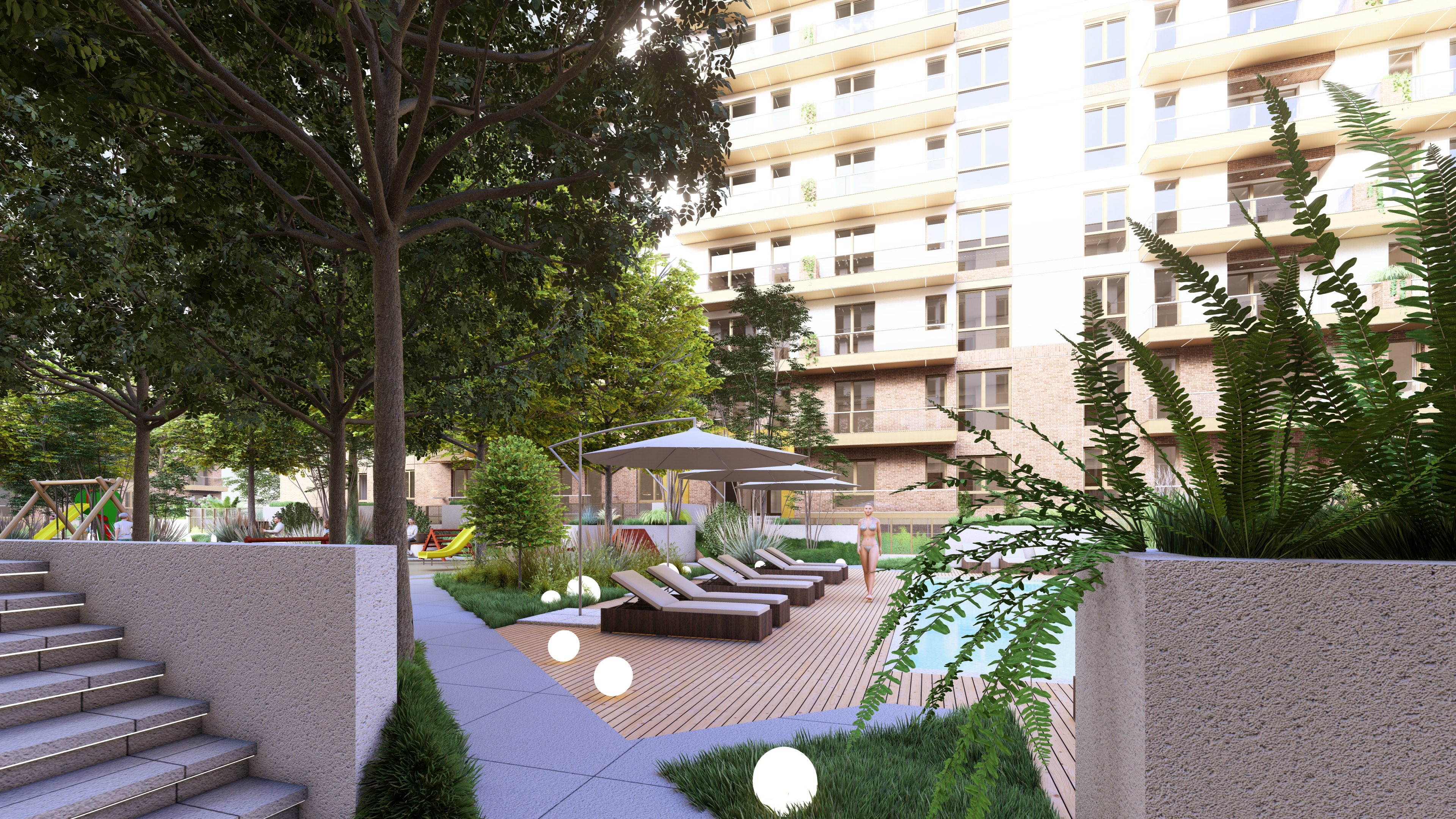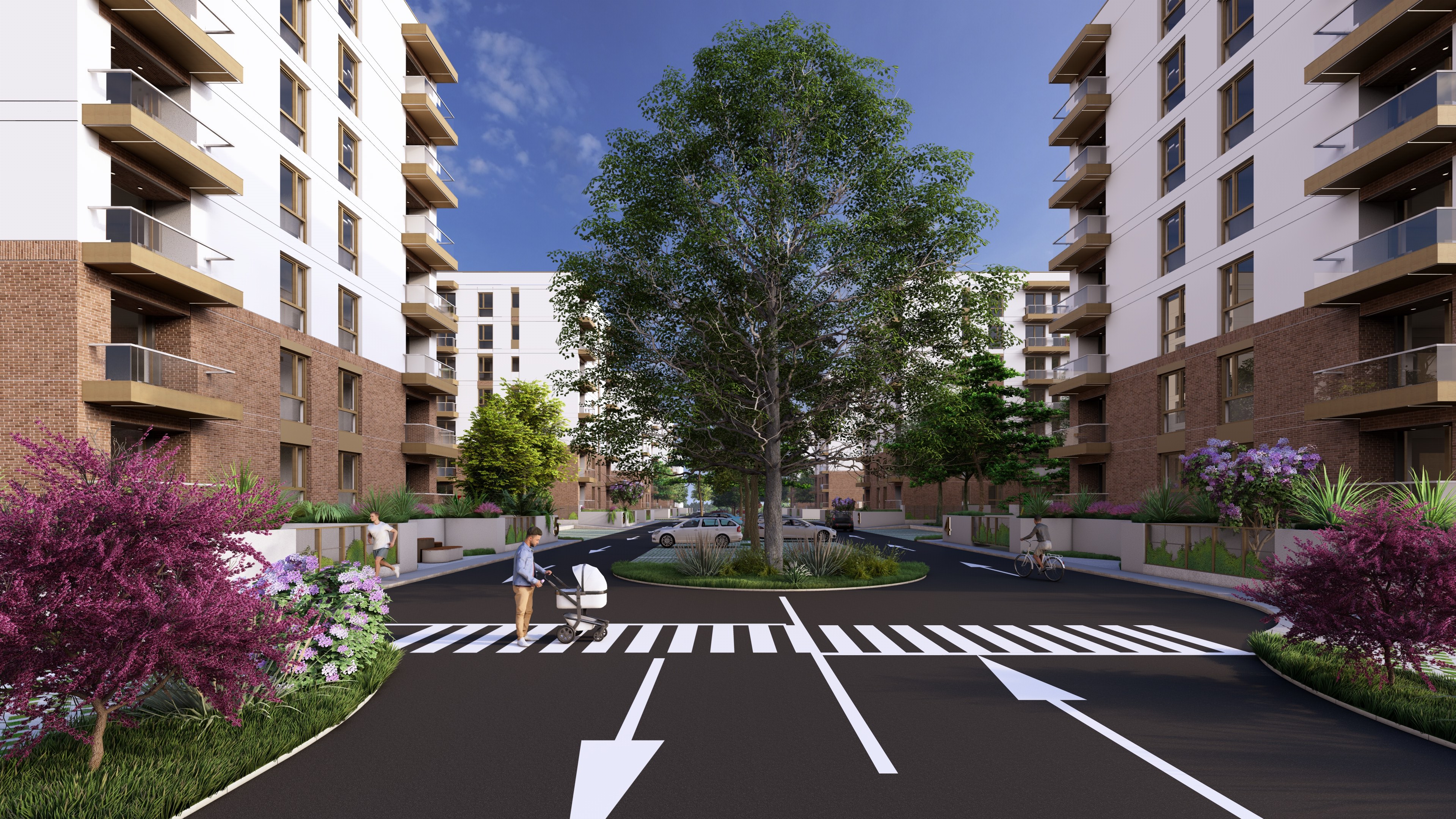 Spații deschise și verzi, integrate armonios într-un cadru urban modern și coerent.